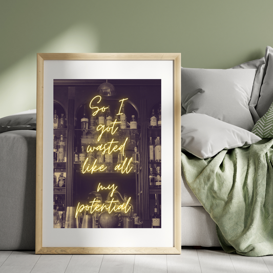 Wall Art Print - So I Got Wasted Like All My Potential | Witty Lyric Quote Decor