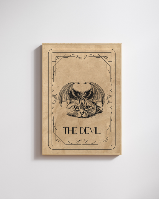 The Devil Tarot Card – Feline Edition Wall Art Print | Mystical Cat Occult Decor