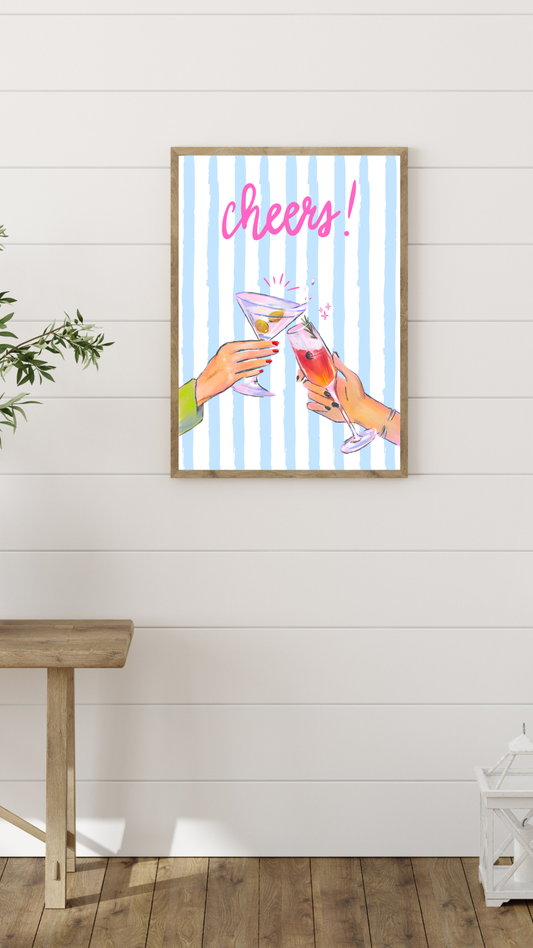 Wall Art Digital Print - Cheers | Cocktail Bar Cart Typography Decor