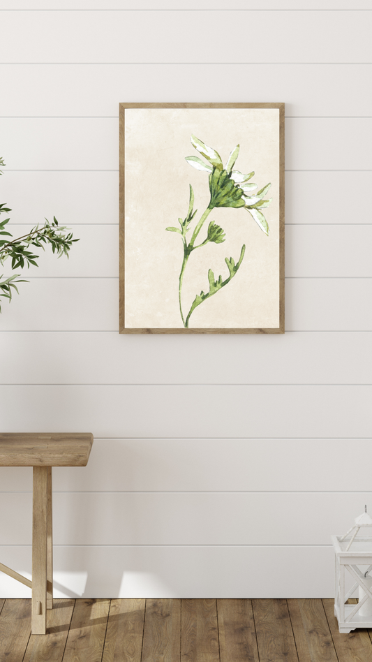 Wall Art Print - Botanical Watercolour Daisy Illustration | Minimalist Floral Decor