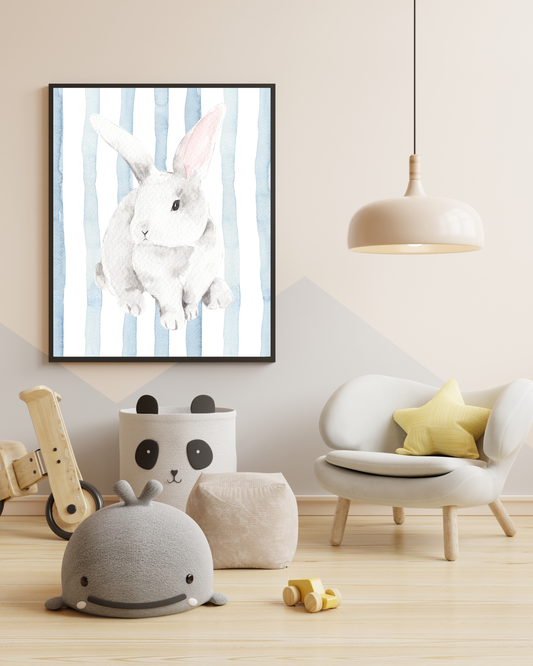 Wall Art Print - Watercolour Bunny | Whimsical Cute Pastel Animal Nursery Decor