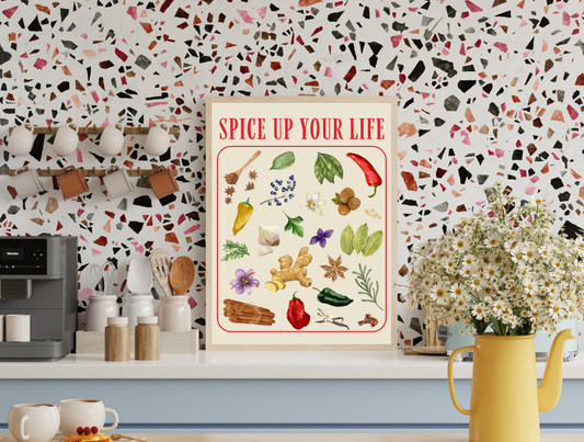 Wall Art Print - Spice Up Your Life | Botanical Kitchen Decor with Herb & Spice Illustration