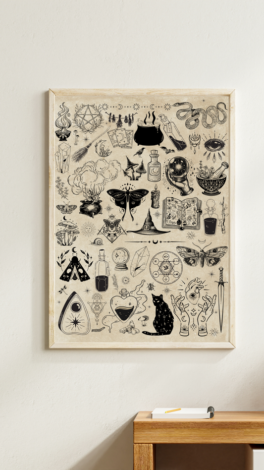 Wall Art Print - Vintage Mystical Witchcraft Illustration | Occult Gothic Decor