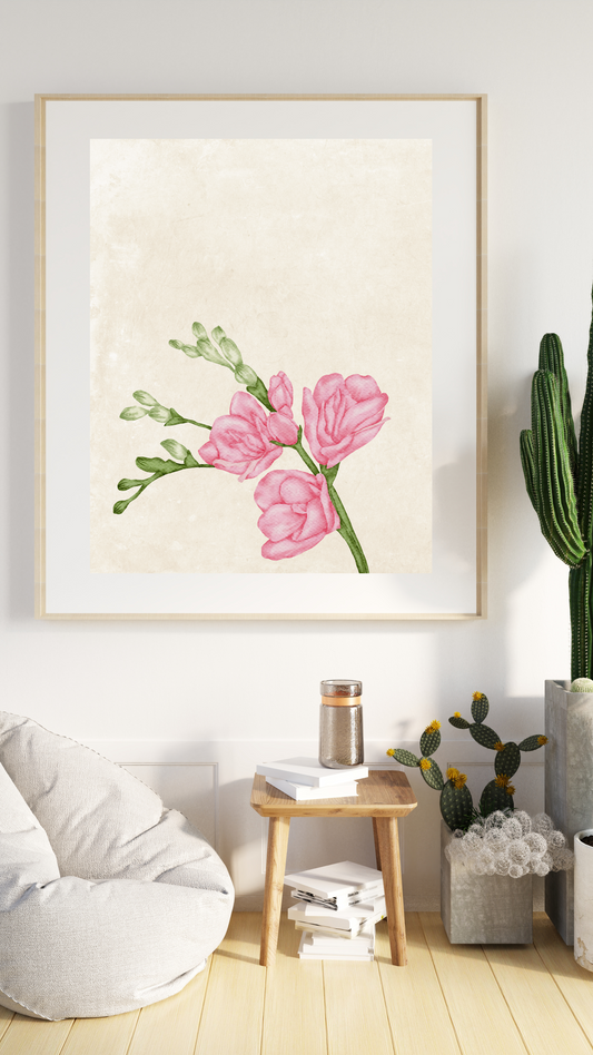 Wall Art Print - Botanical Watercolour Freesia Illustration | Minimalist Floral Decor