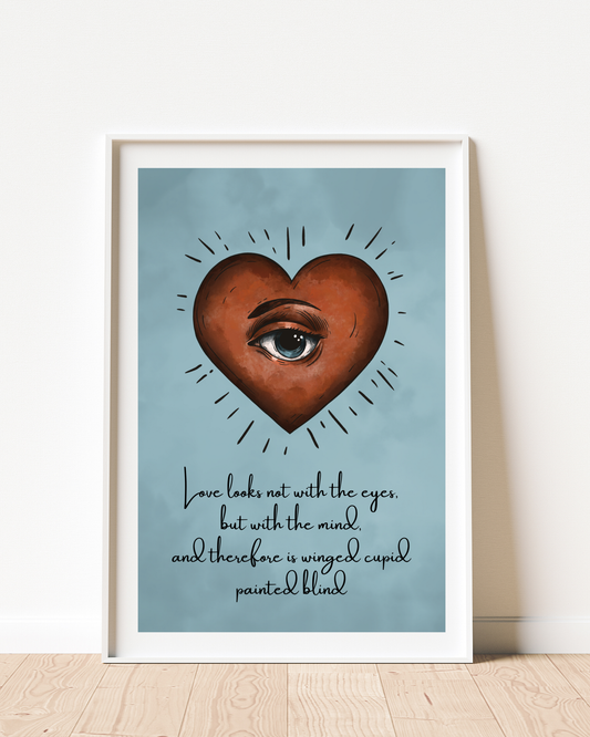 Wall Art Print - “Love Looks Not with the Eyes” | Surreal Shakespeare Quote Literature Heart & Eye Illustration Print