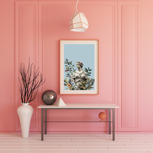 Wall Art Print - Floral Goddess | Classical Statue Collage with Vintage Botanical Details