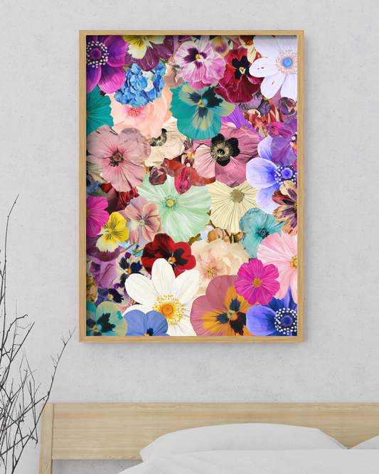 Wall Art Print - Flower Power | Bold Colourful Botanical Collage of Vintage Blooms