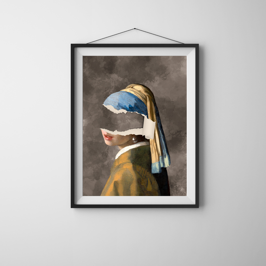 Wall Art Print - Ripped Girl with a Pearl Earring | Classic Art Vermeer Remix Decor