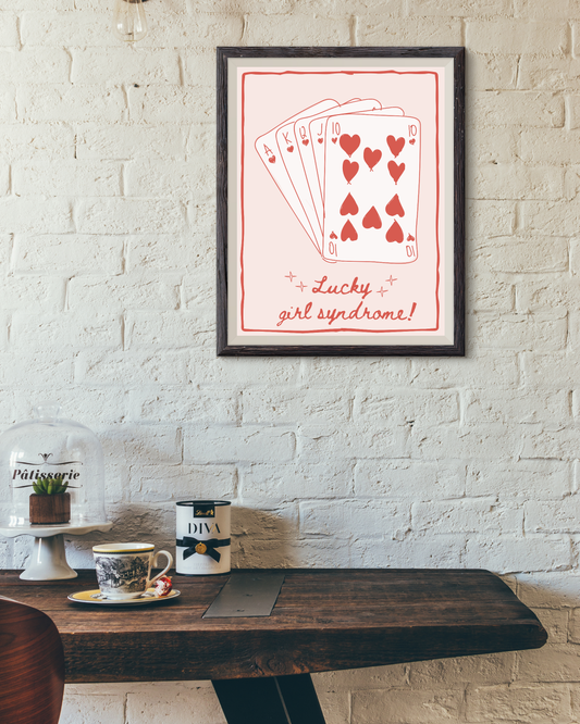 Wall Art Print - Lucky Girl Syndrome | Retro Pink Playing Card Illustration Manifestation