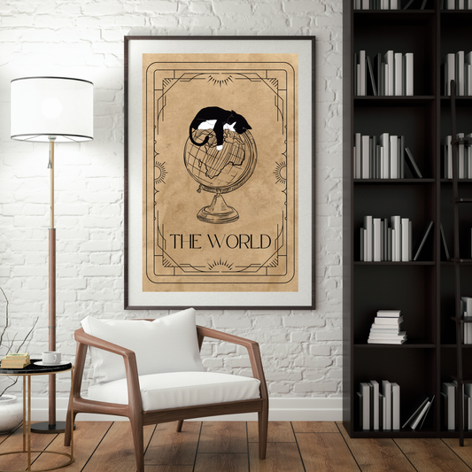 Wall Art Print - Tarot Card - The World, Cat Edition | Whimsical Mystical Decor