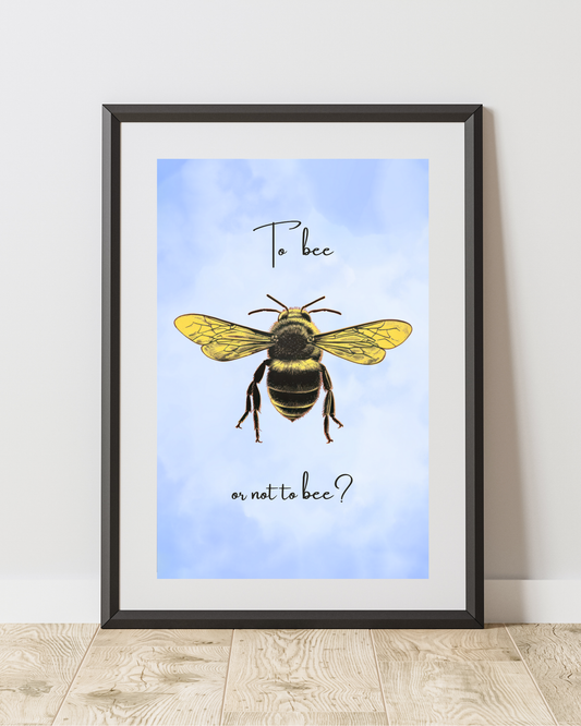 Wall Art Print - To Bee or Not to Bee | Shakespearean Bee Pun Whimsical Home Decor