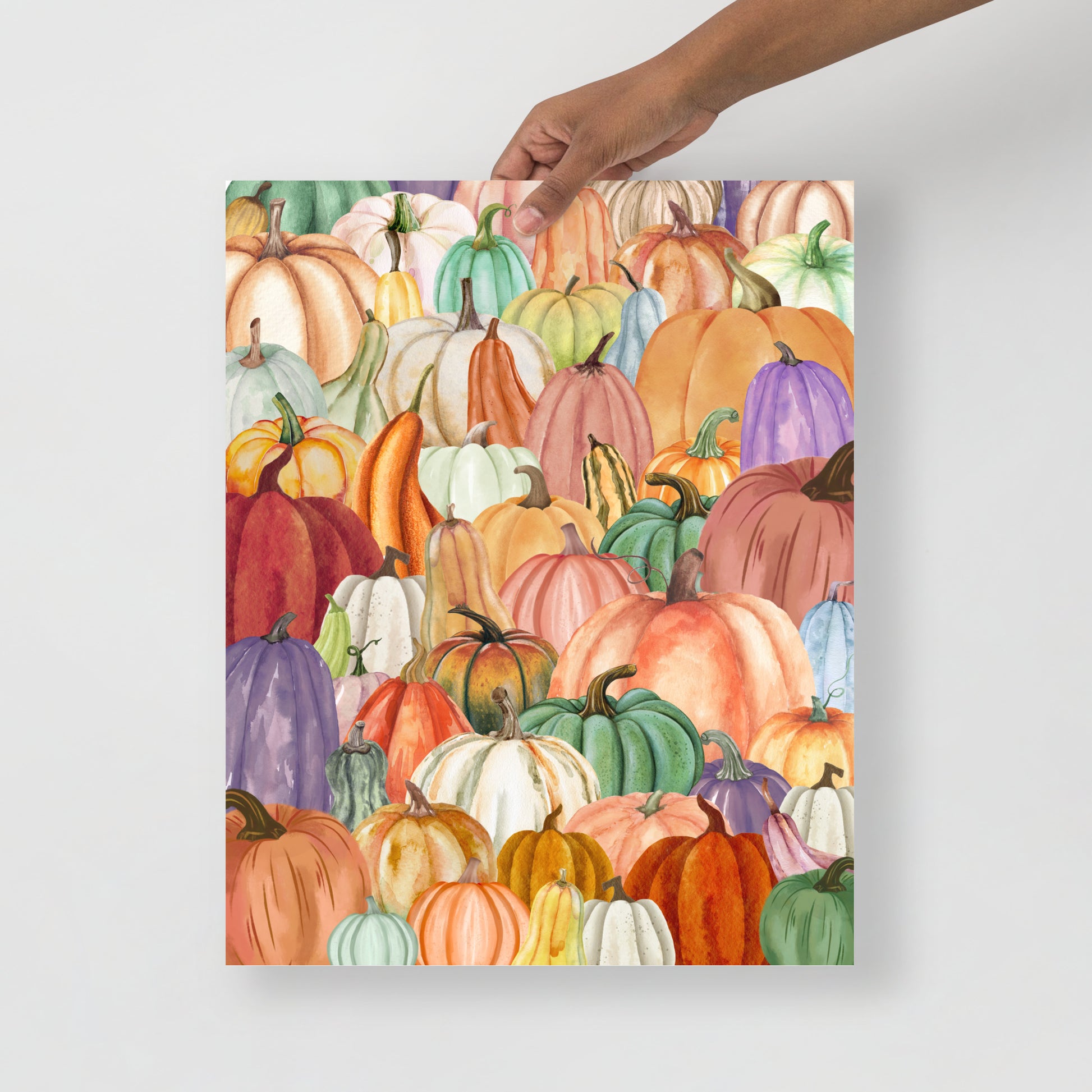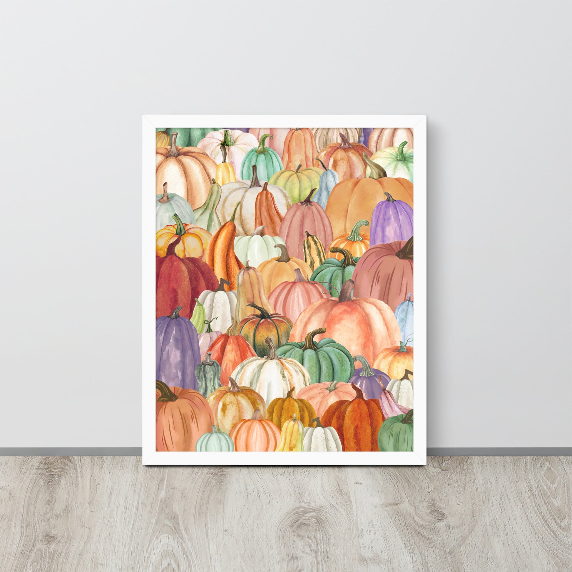 Celebrate the beauty of autumn with this vibrant pumpkin patch wall art print. Featuring a charming collection of watercolour pumpkins in warm harvest tones and soft pastel shades, this artwork brings the cosy feeling of fall straight to your home. Perfect for seasonal decorating, this pumpkin print makes a stunning addition to your living room, kitchen, entryway, or gallery wall. A beautiful way to embrace autumn, Halloween, and cosy vibes.